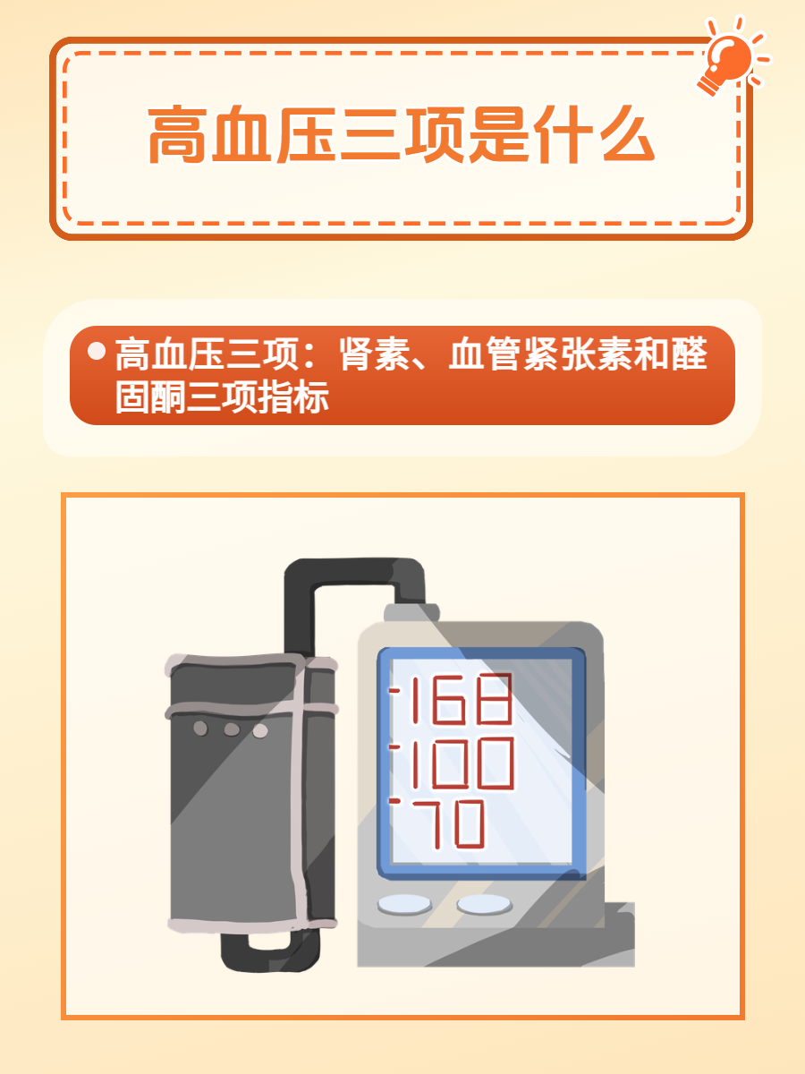 高血压三项通常指的是血浆肾素活性测定,具体包括肾素、血管紧张素和醛固酮三项指标。以下是我对此进行的详细分析: