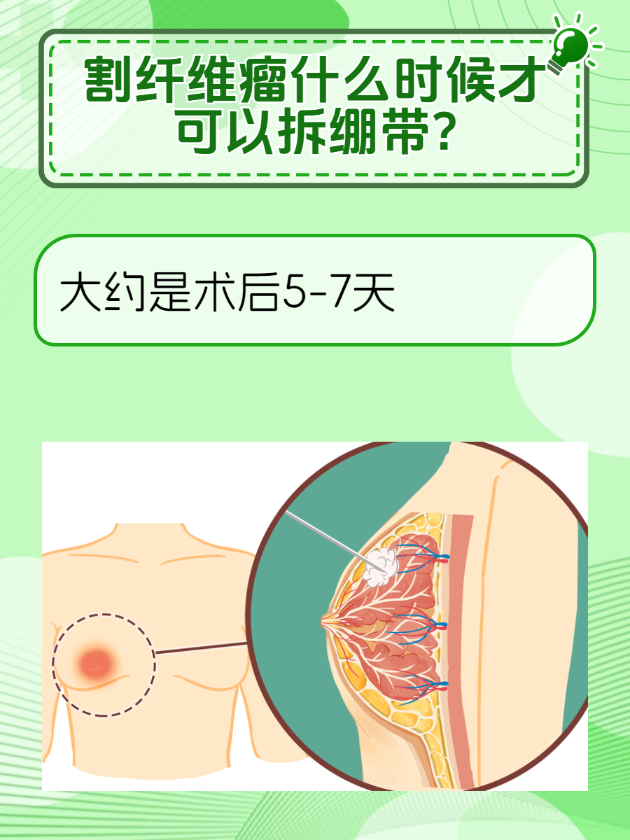 纤维瘤切除术后,通常需要根据医生的建议来决定何时拆除绷带。⏳一般情况下,绷带的拆除时间大约是术后5-7天,但具体时间还要看伤口愈合情况和手术方式。💪