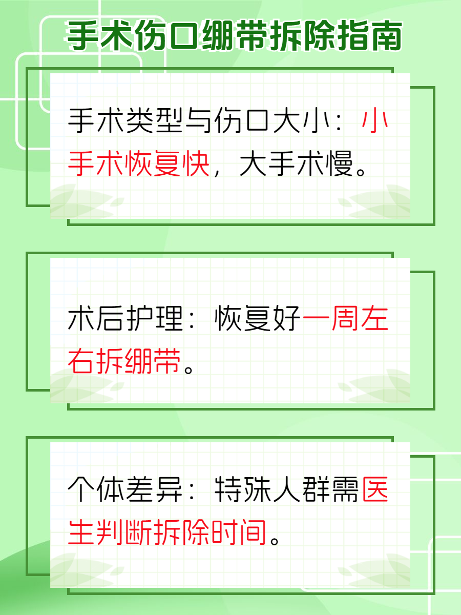 3️⃣ 个体差异:不同人的身体状况也会影响恢复速度,比如免疫力较差、糖尿病患者的伤口愈合时间可能会延长。⏳这类情况需要根据医生的评估来判断合适的拆绷带时间。