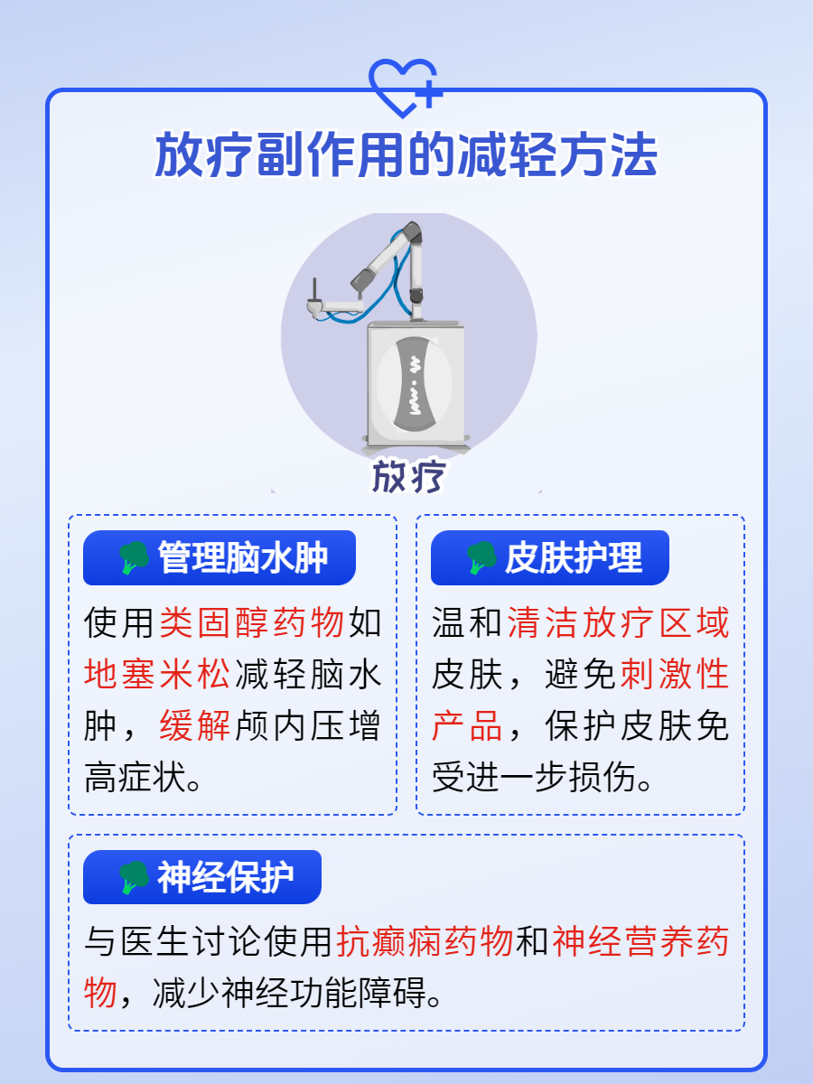 🤷♂️脑水肿和颅内压增高:放疗可能引起脑水肿,导致颅内压增高,患者可能会出现恶心、呕吐等症状,尤其在单次大剂量放疗后更为明显。