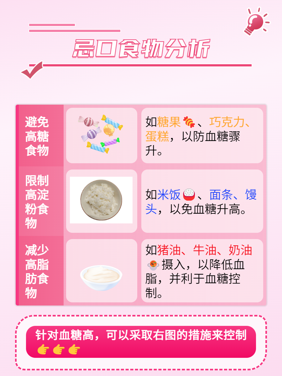 🌟3、高脂肪食物:例如猪油、牛油、奶油等,这些食物中富含饱和脂肪酸,容易导致血脂升高,增加心血管疾病的风险,而且不利于血糖的控制。