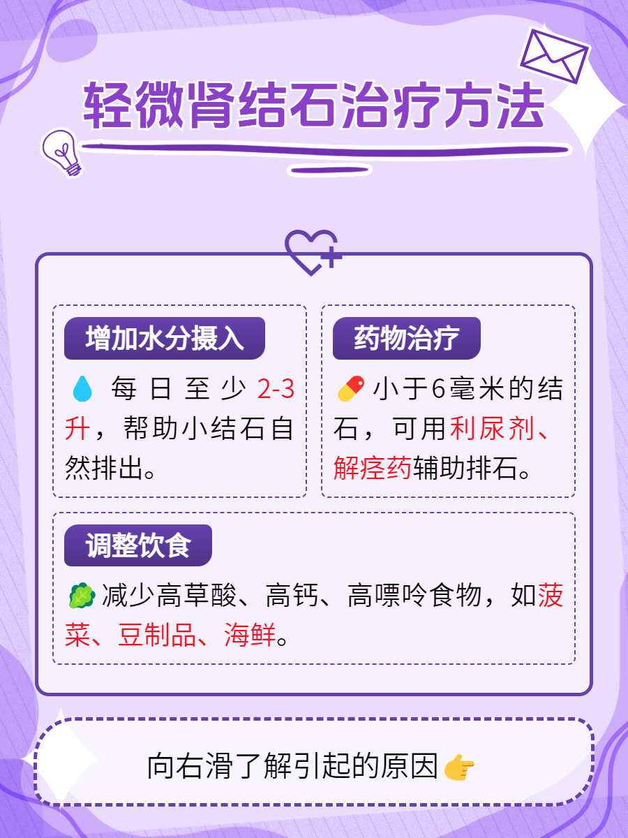 我认为,增加水分摄入、药物治疗、调整饮食习惯是应对轻微肾结石的有效手段。💧 轻微肾结石虽然看似无害,但如果不及时处理,可能会带来不必要的痛苦。😖