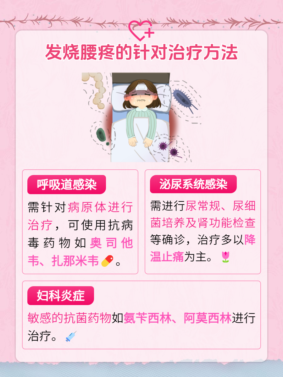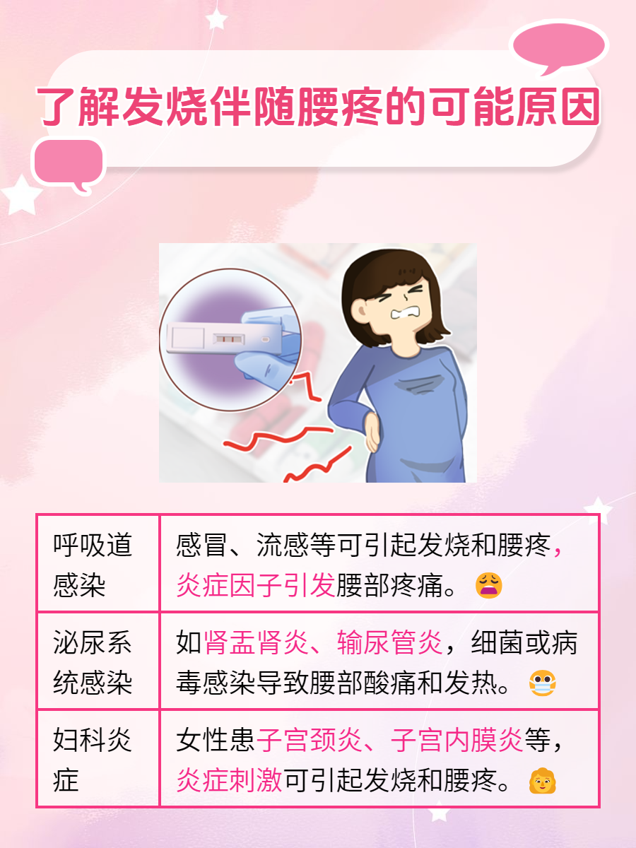 发烧腰疼可能是由多种原因导致的机体炎症反应和体温升高的表现。💊如果你觉得这些信息对你有帮助,请点赞👍并关注,让我们一起为健康加油!🌹