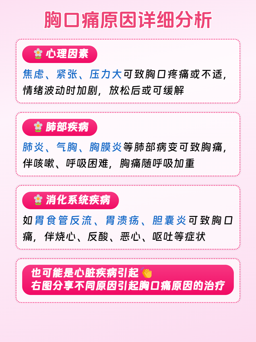 胸口痛是一种常见的症状,可能由多种原因引起。那么,胸口痛到底是怎么回事呢❓接下来就让我们一起来了解一下吧!😃