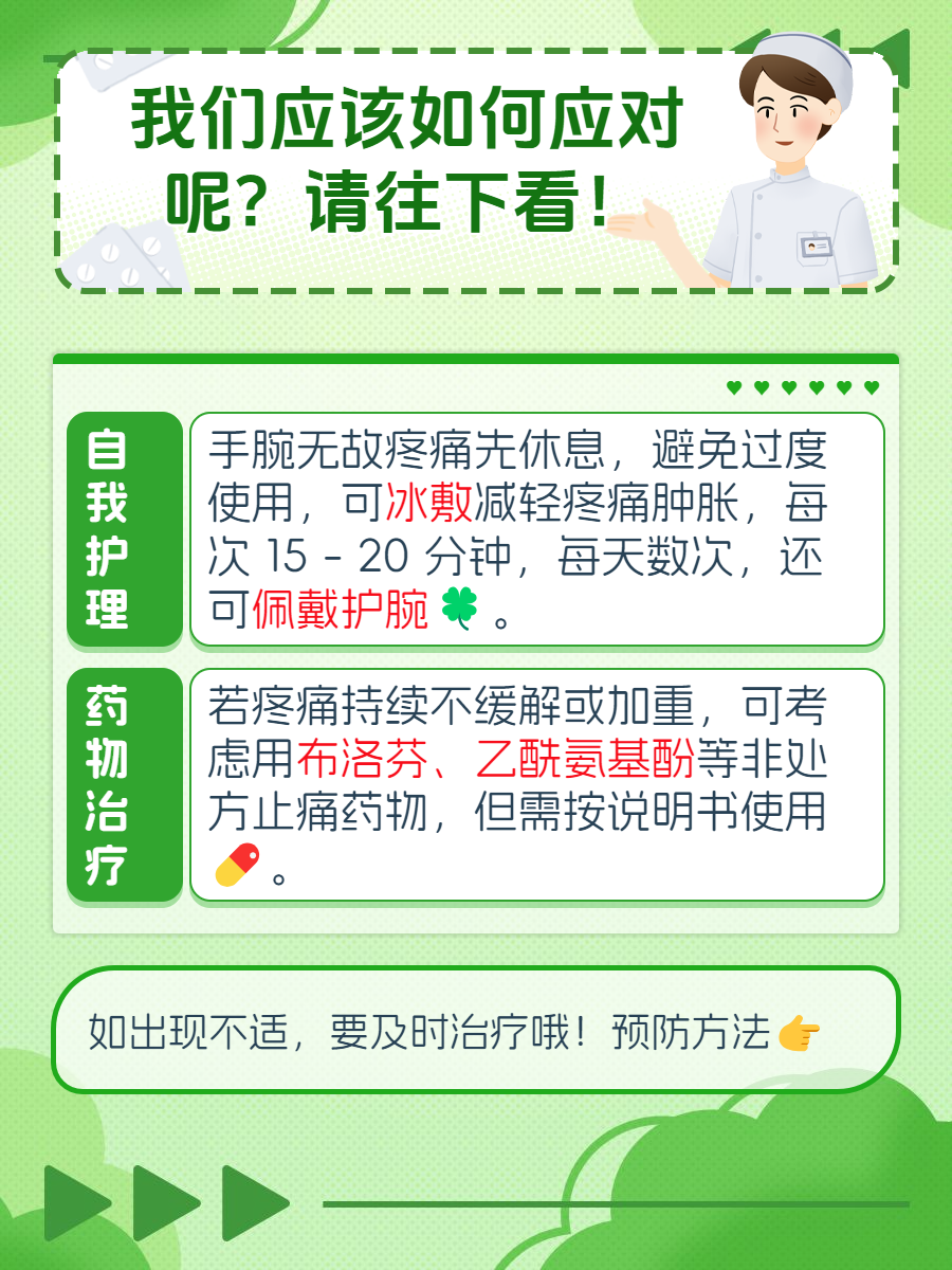 今天来说说 “手腕突然无缘无故疼痛怎么办” 这个问题😒。我觉得呀,手腕突然疼痛可不能忽视,它可能会影响我们的日常生活和工作😎。