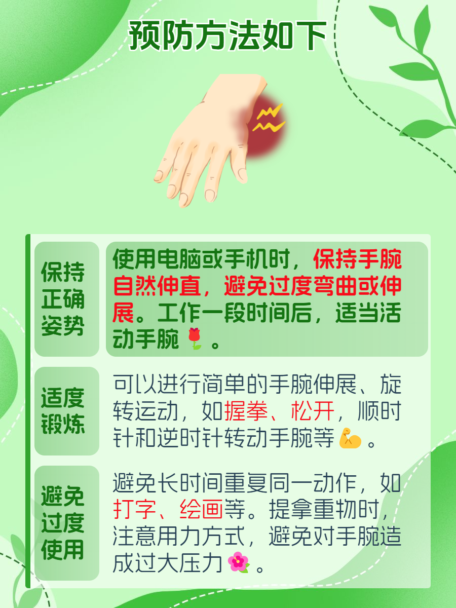 希望大家都能拥有健康的手腕,快乐地生活😀!如果这篇文章对你有帮助,别忘了点赞分享哦👍🎉,也祝愿大家都能远离疼痛,身体棒棒哒💖!