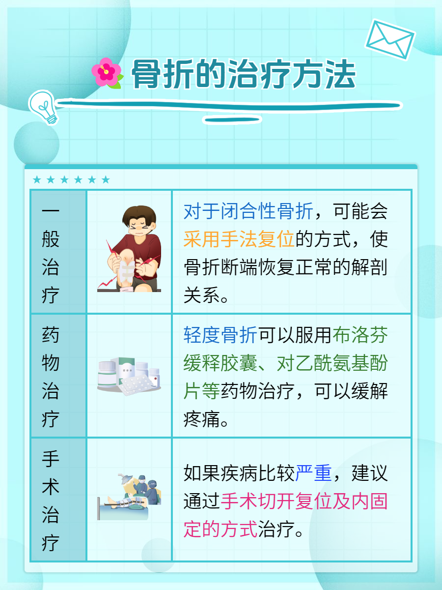 ✨1、饮食调理:健康饮食,保证营养均衡,多吃一些高蛋白食物、维生素D和钙质等营养物质,对于骨折愈合是有帮助的。