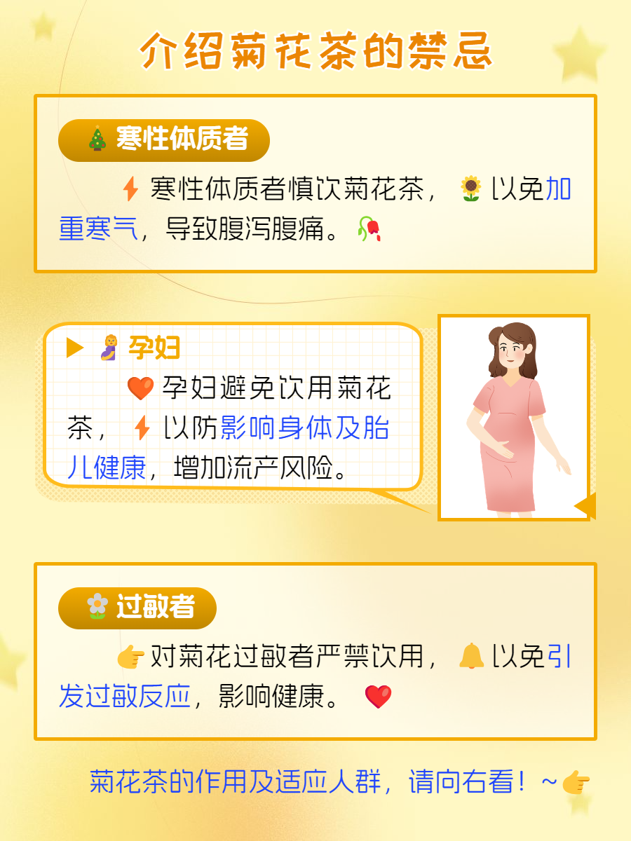 其二,孕妇。孕妇身体较为特殊,菊花茶的寒凉性质可能会影响孕妇的身体状态,对胎儿也可能产生不利影响,比如引起子宫收缩,增加流产风险。🤰