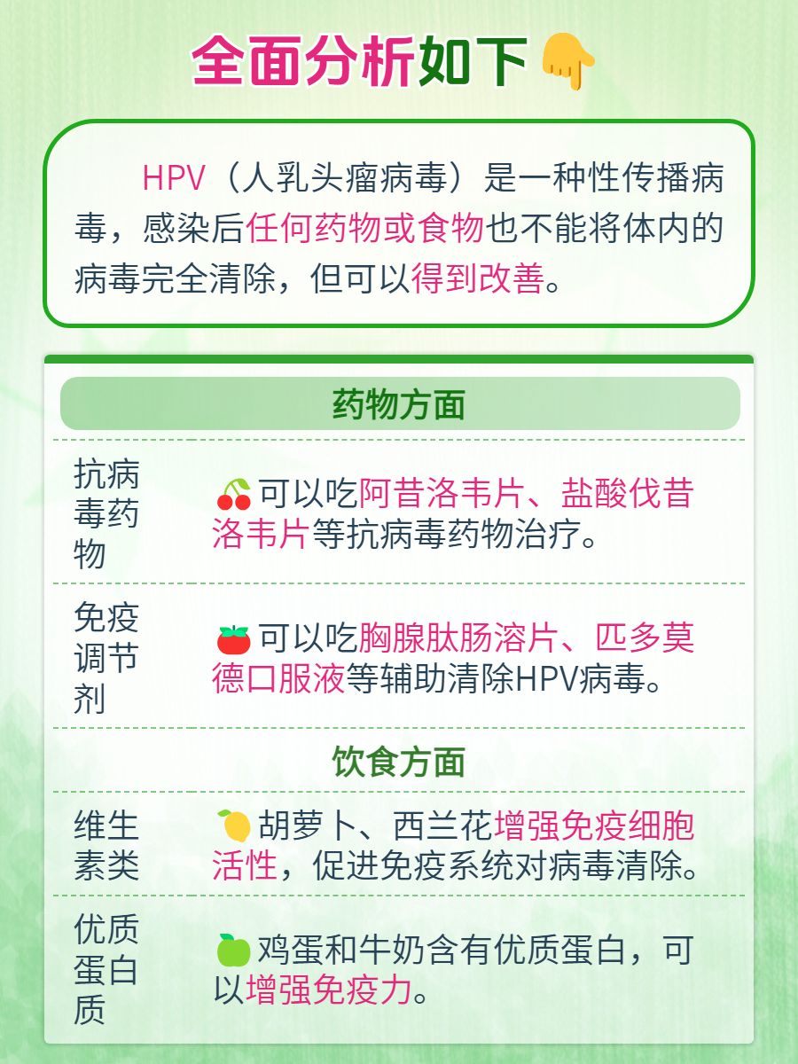 首先,❤️我们要明确一点,📚HPV(人乳头瘤病毒)是一种非常严重的性传播病毒,一旦感染吃什么也不能将其完全清除。药物方面没有特定的特效药物,可以确保完全清除,😊但合理用药可以增强免疫力,📚也可能抑制病毒复制,从而发挥作用。而饮食方面,通过调整饮食可以提高身体免疫力,有助于对抗体内的HPV病毒。