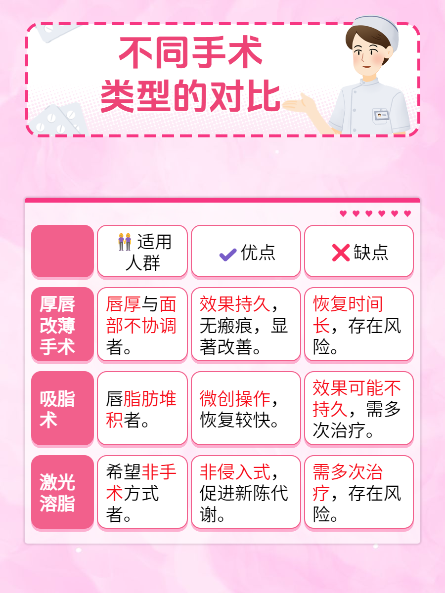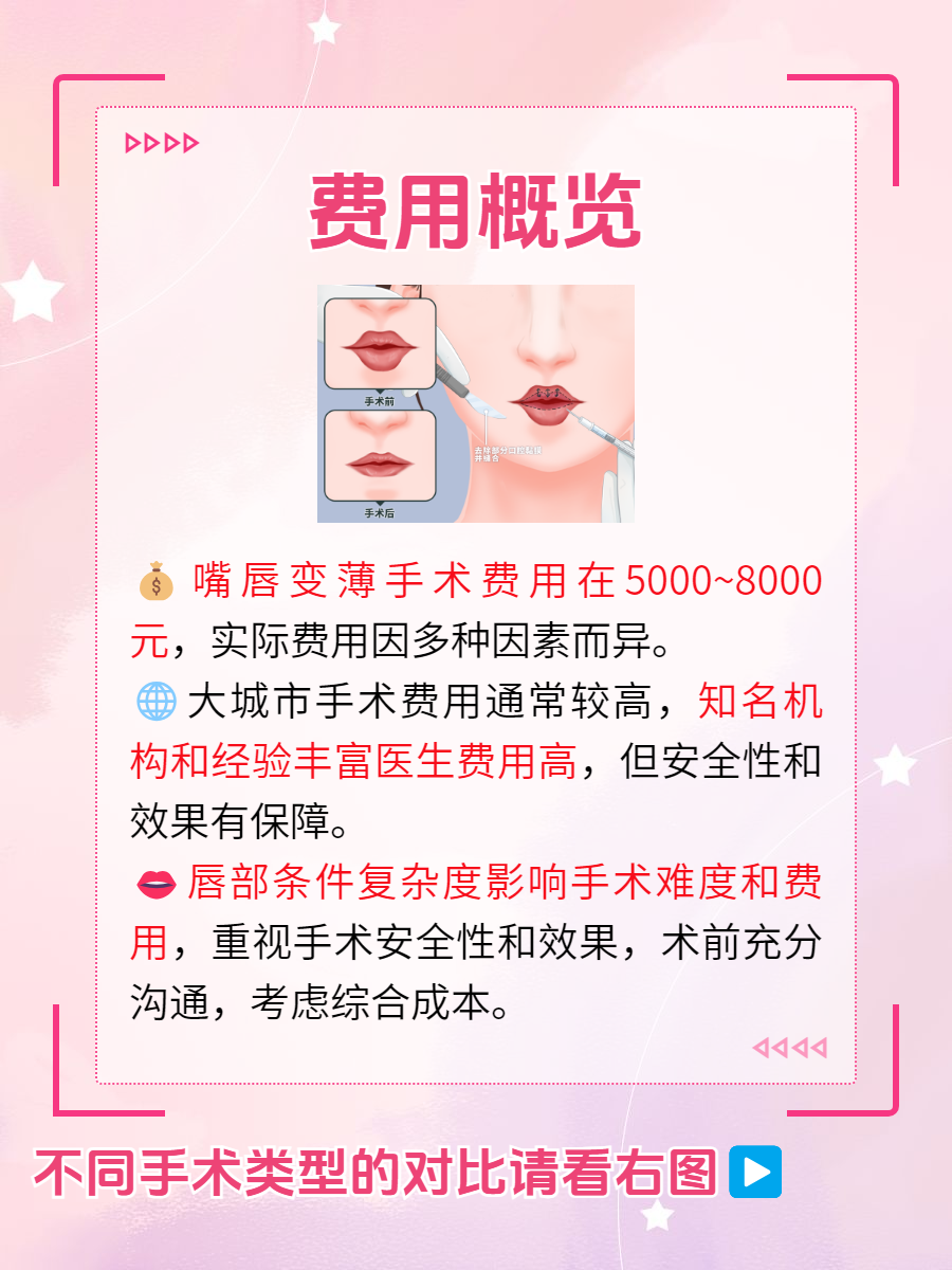 👉在此,我要提醒大家,在选择嘴唇变薄手术时,切勿只看重价格而忽略了手术的安全性和效果。术前务必与医生进行充分沟通,了解手术方案、预期效果及潜在风险。同时,也要考虑综合成本,包括手术费用、麻醉费、术后护理及复诊费等,做好全面的预算规划。🥰