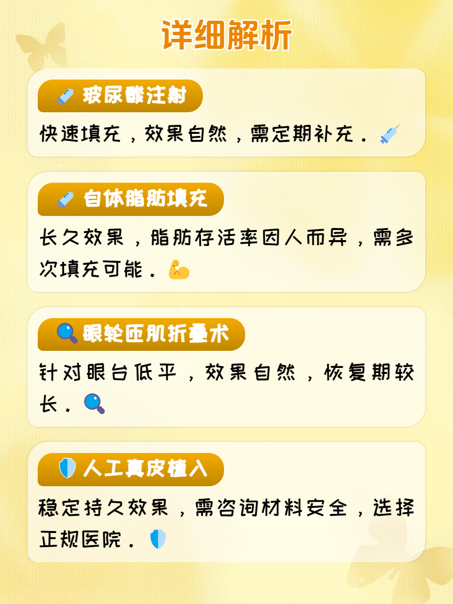 💉此外,想要一劳永逸,人工真皮植入或许是个选择。将人工真皮组织植入眼睑下方,模拟自然卧蚕形态,效果稳定且持久。🛡️我提醒大家,术前需详细咨询,了解植入材料的安全性及可能的并发症。选择正规医院,确保手术安全与效果。