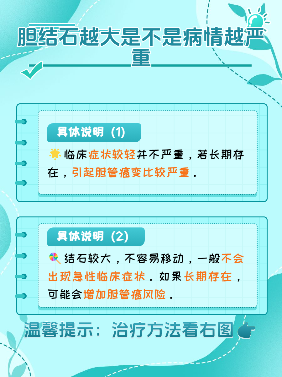 在评估胆结石病情时,并不能仅凭结石的大小来做判断,通常医生会结合患者的体征、症状、影像学检查等多方面进行综合评估,从而采取适合的治疗方案。🌈