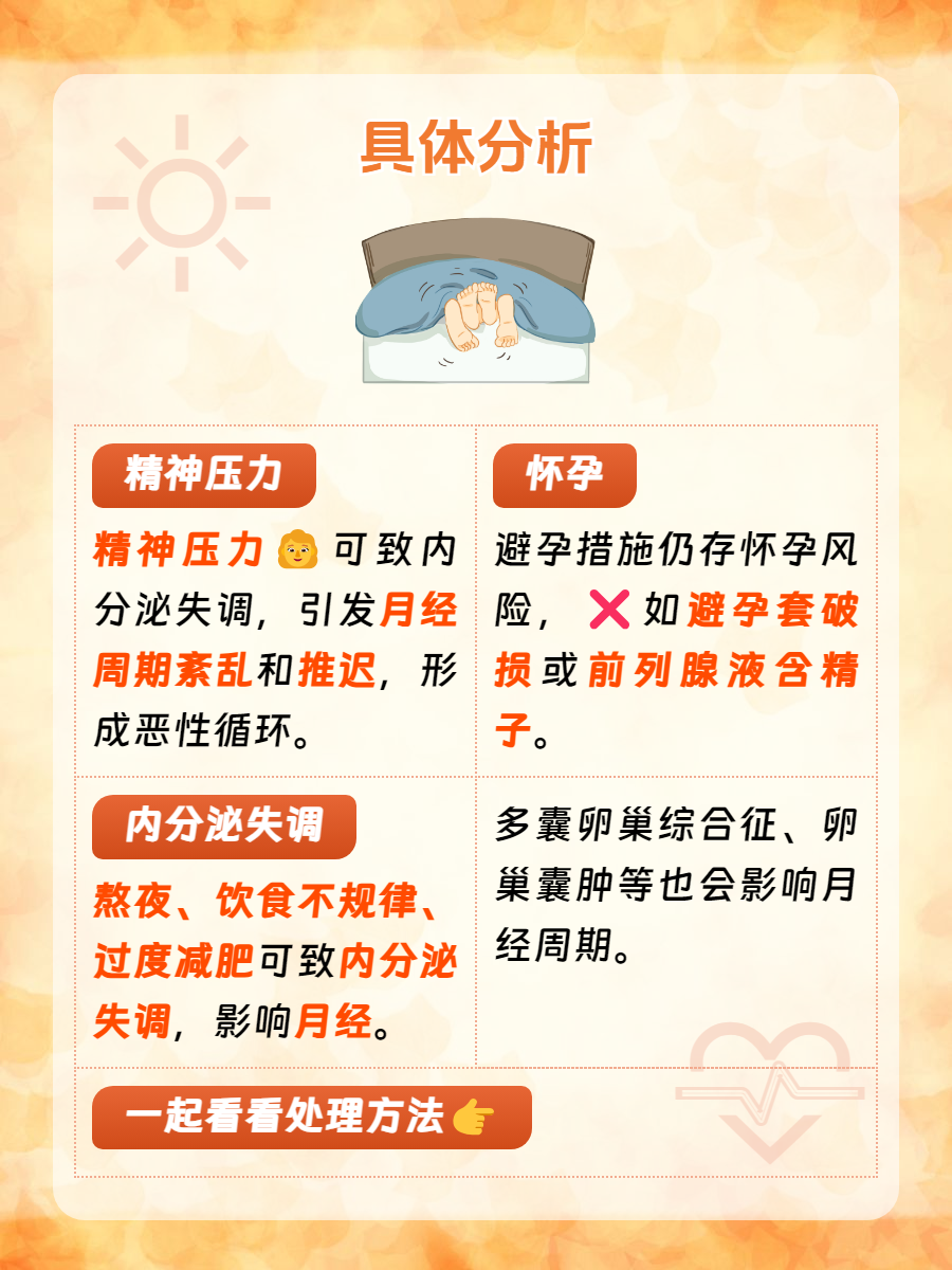 3、🎈内分泌失调:除了精神因素外,一些不良的生活习惯也可能导致内分泌失调。比如长期熬夜、饮食不规律、过度减肥等。内分泌失调会影响卵巢功能,导致月经不规律,出现月经推迟甚至闭经的情况😫。
