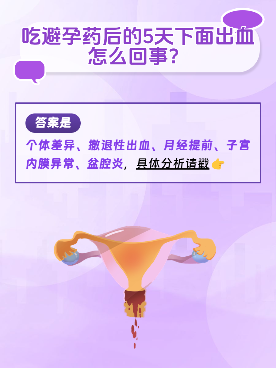 除以上原因外,🥫子宫内膜异常、盆腔炎也可能导致吃避孕药后5天下面出血。