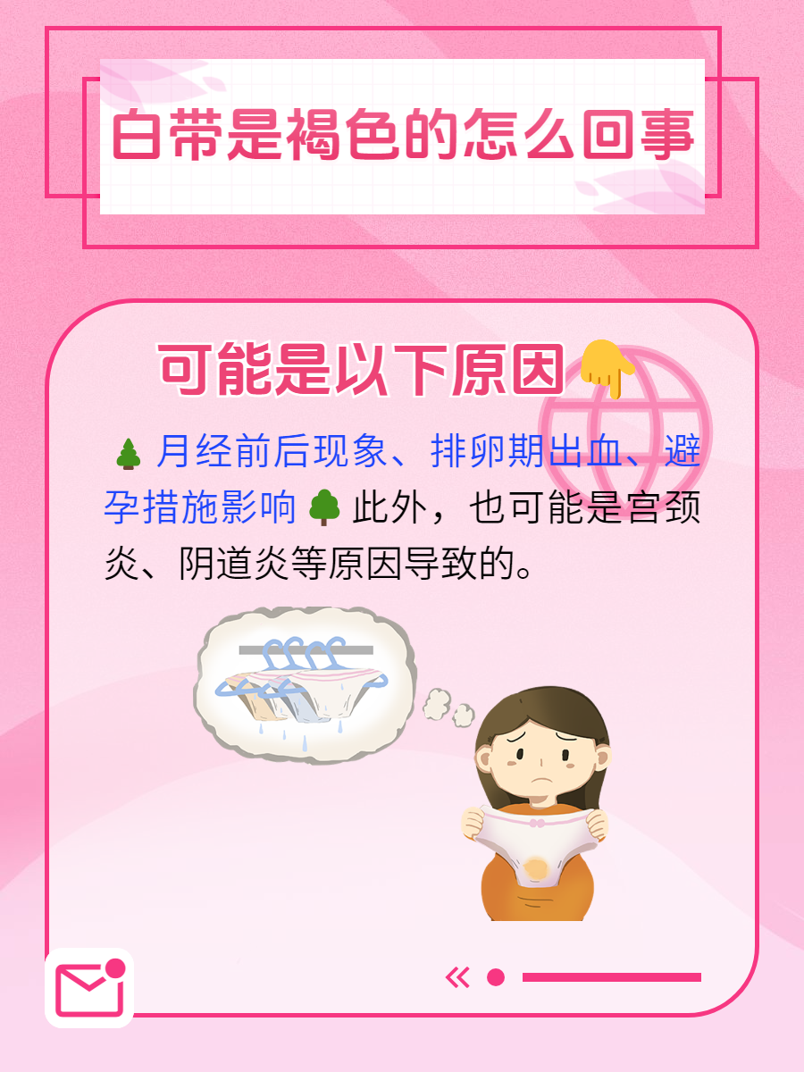 🌸1、月经前后现象:月经开始前或结束后的一两天,由于子宫内膜经历着轻微的脱落过程或仍有少量残留经血逐渐排出,这一时期内,白带可能会呈现出褐色的外观。这是完全正常的生理现象。