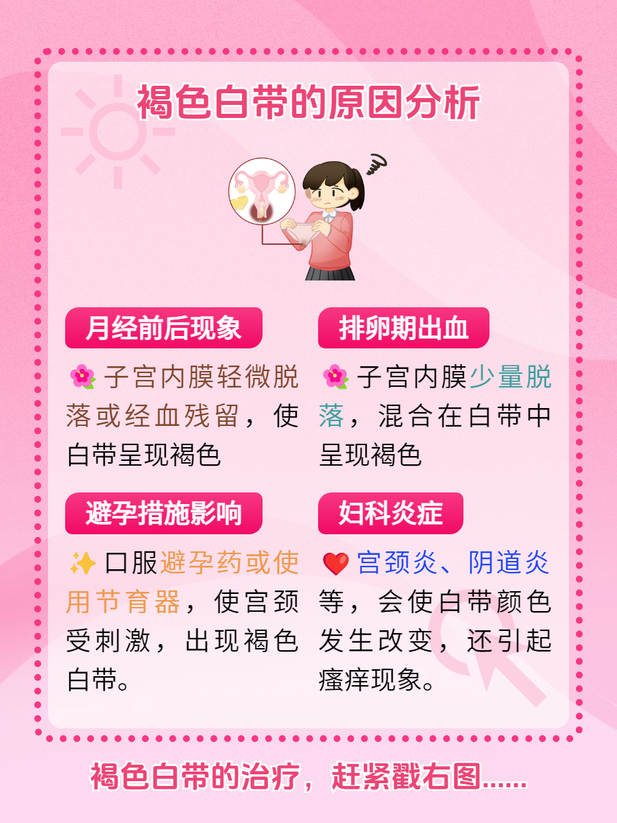 🌞1、观察与记录:我建议大家多留意褐色白带出现的时间、持续时间及伴随症状,有助于我们诊断。