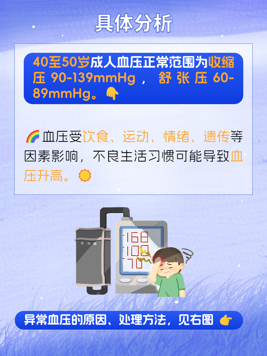🚩人到中年,健康问题愈发受到关注,血压就是其中一项重要指标。对于40到50岁的人群来说,了解血压标准至关重要。😟那么这个年龄段的血压标准究竟是多少呢?