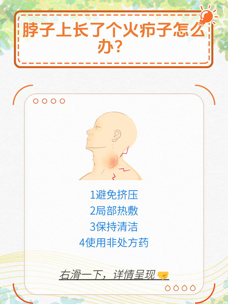 😱脖子上长了个火疖子怎么办?火疖子在医学上被称为疖肿,是一种常见的皮肤问题,它通常是由于毛囊或皮脂腺的细菌感染引起的,由金黄色葡萄球菌是最常见的致病菌,表现为局部红肿、疼痛,有时还会形成脓疱。✋