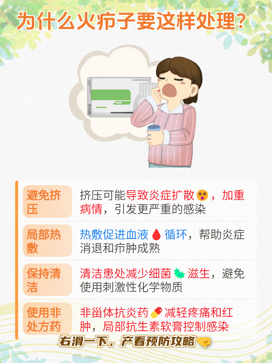 ⚠如果火疖子的症状持续加重,如疼痛剧烈、红肿范围扩大、发热等应及时就医,医生会根据情况给予专业处理,火疖子虽然常见,但也要适当的处理和关注。🌷