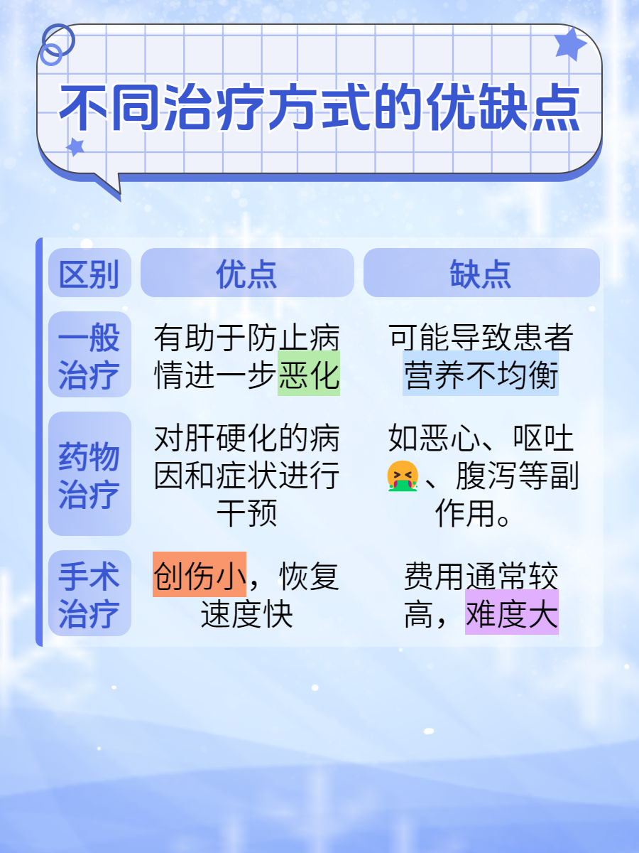 🔷3、手术治疗:在肝硬化晚期,若肝功能严重受损且药物治疗无效时,可考虑进行肝脏移植手术💉。