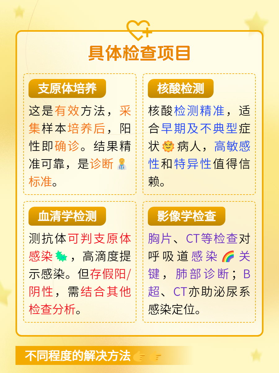 首先,支原体检查的核心在于病原体的直接检测与间接证据收集。这主要包括支原体培养、核酸检测、血清学检测以及影像学检查等多个方面。