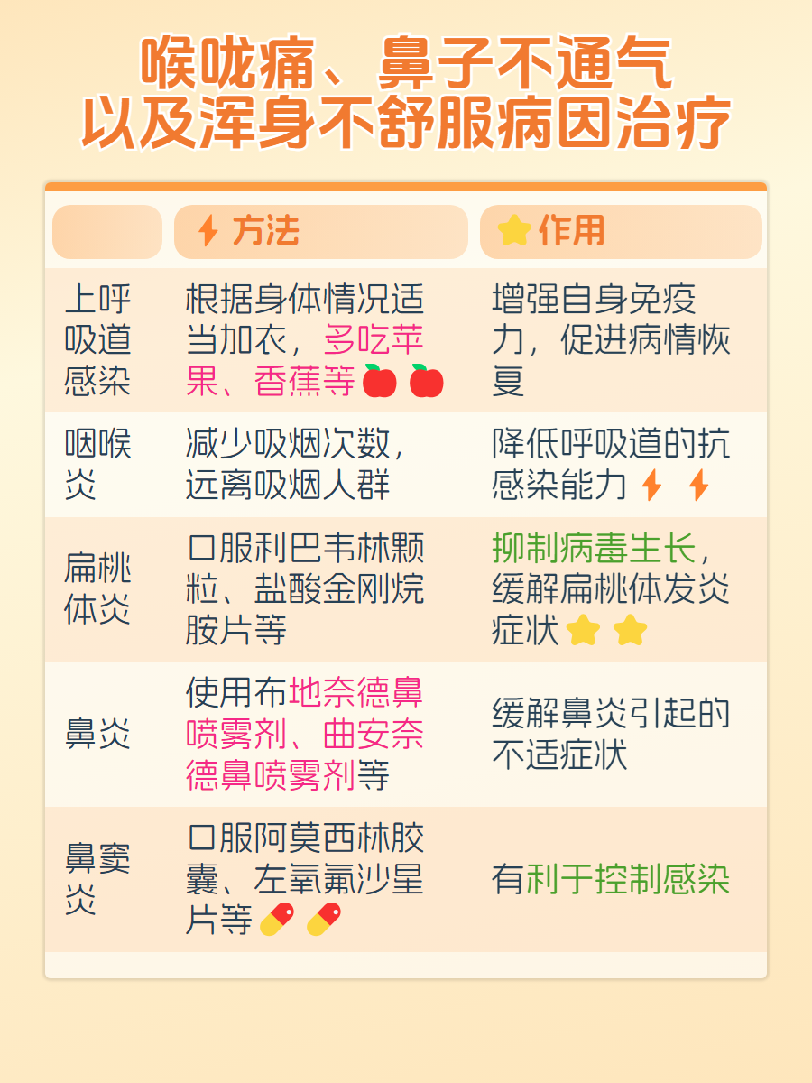 🌿针对喉咙痛鼻子不透气浑身不舒服这种症状,在平时,我建议调整以下措施,来预防这种症状的发生: