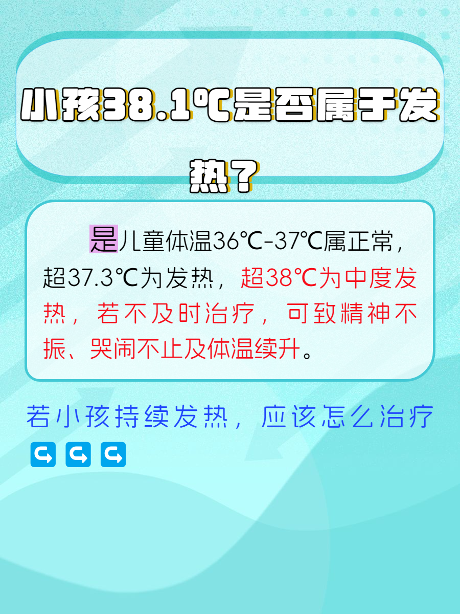 因为儿童的正常体温范围在36℃~37℃之间,超过37.3℃可以被认为是发热,而且超过38℃,这属于中度发热。此时温度过高,如果不及时治疗,孩子可能会出现精神萎靡、食欲不振,甚至持续哭闹、体温持续升高的症状。