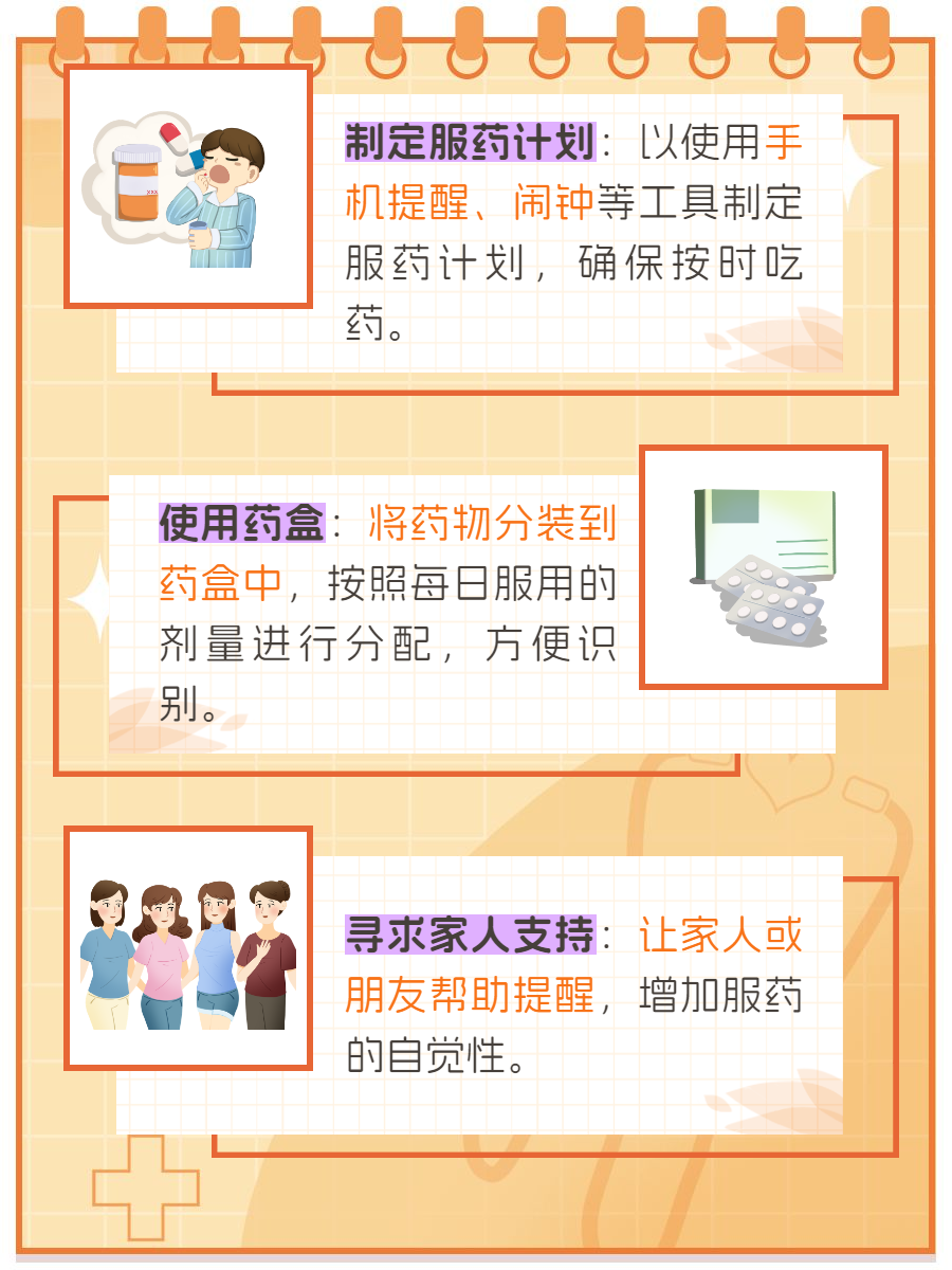 1、遵医嘱服药:严格按照医生的处方和说明书服用药物,包括剂量、频率和服药时间。切勿自行增减药量或随意停药,以免影响疗效或引发不良反应。💊