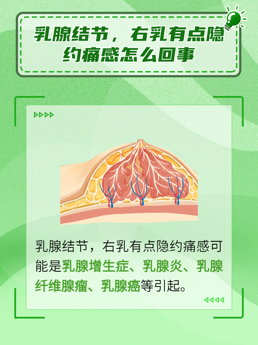 腺结节并伴有右乳隐约痛感,可能是由多种乳腺疾病引起的症状。以下我是对这一现象的详细解析: