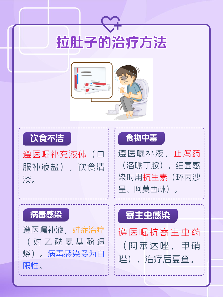 拉肚子的原因多种多样,了解原因才能更好地应对。😊如果因为吃了不干净的东西出现腹泻,腹泻时身体流失大量水分,必须及时补充水分。可以喝淡盐水、口服补液盐溶液,避免脱水。如果腹泻伴有发烧、血便,或症状持续超过两天,我建议尽早就医。此时可能需要更为深入的检查或治疗,包括肠镜或抗生素疗法等。😷