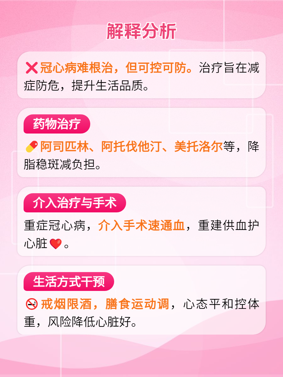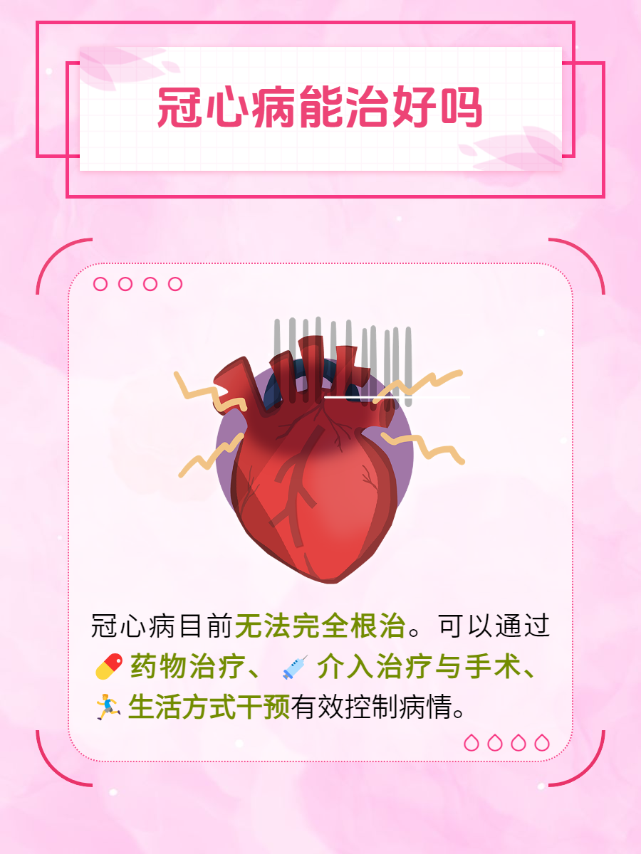 🌈虽然冠心病无法完全根治,但通过科学的治疗和管理,患者仍然可以过上充实而健康的生活。重要的是要保持积极的心态,遵循医生的建议,坚持健康的生活方式,共同守护心脏的健康。⚡️