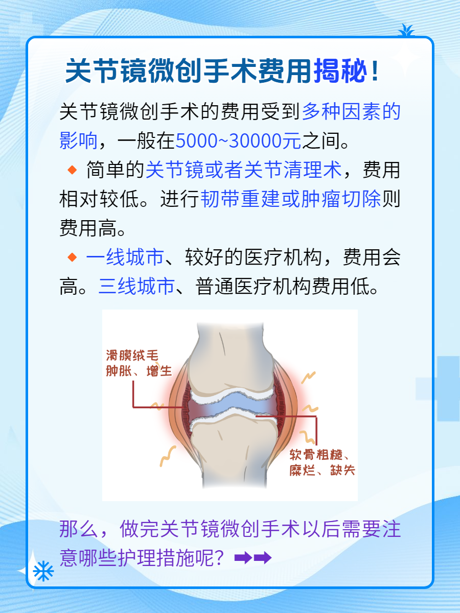 关节镜微创手术作为一种先进的医疗技术,以其创伤小、恢复快、效果好的特点,在关节疾病的治疗中发挥着重要作用。今天,我们就来详细探讨一下关节镜微创手术的费用吧!😔