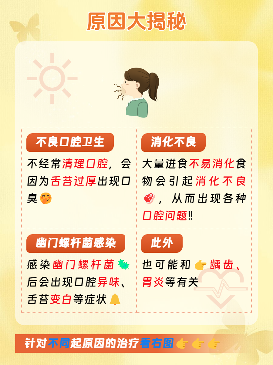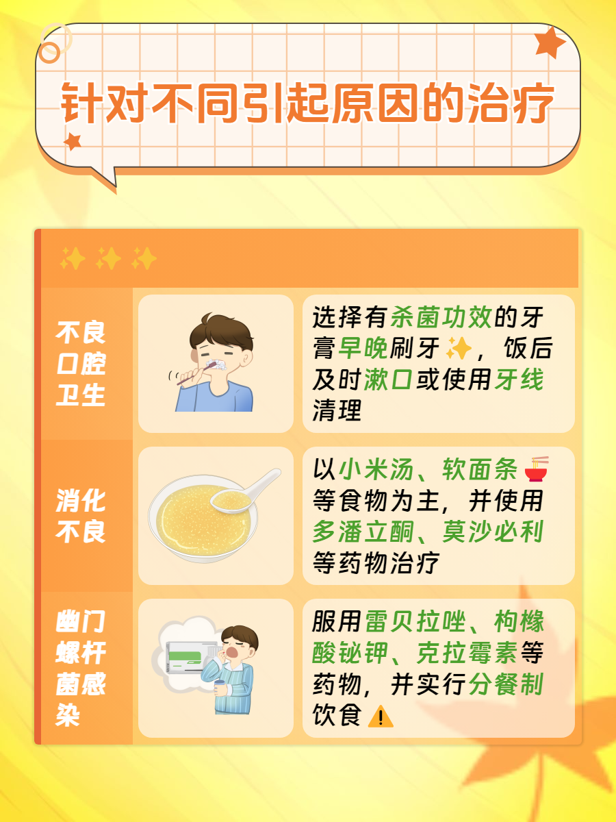 除了以上原因以外,👉龋齿、胃炎等原因也可能会引起上述不良现象发生。如果这种现象长时间存在,建议前往医院接受专业医生检查🧐,并根据检查结果进行相应改善。