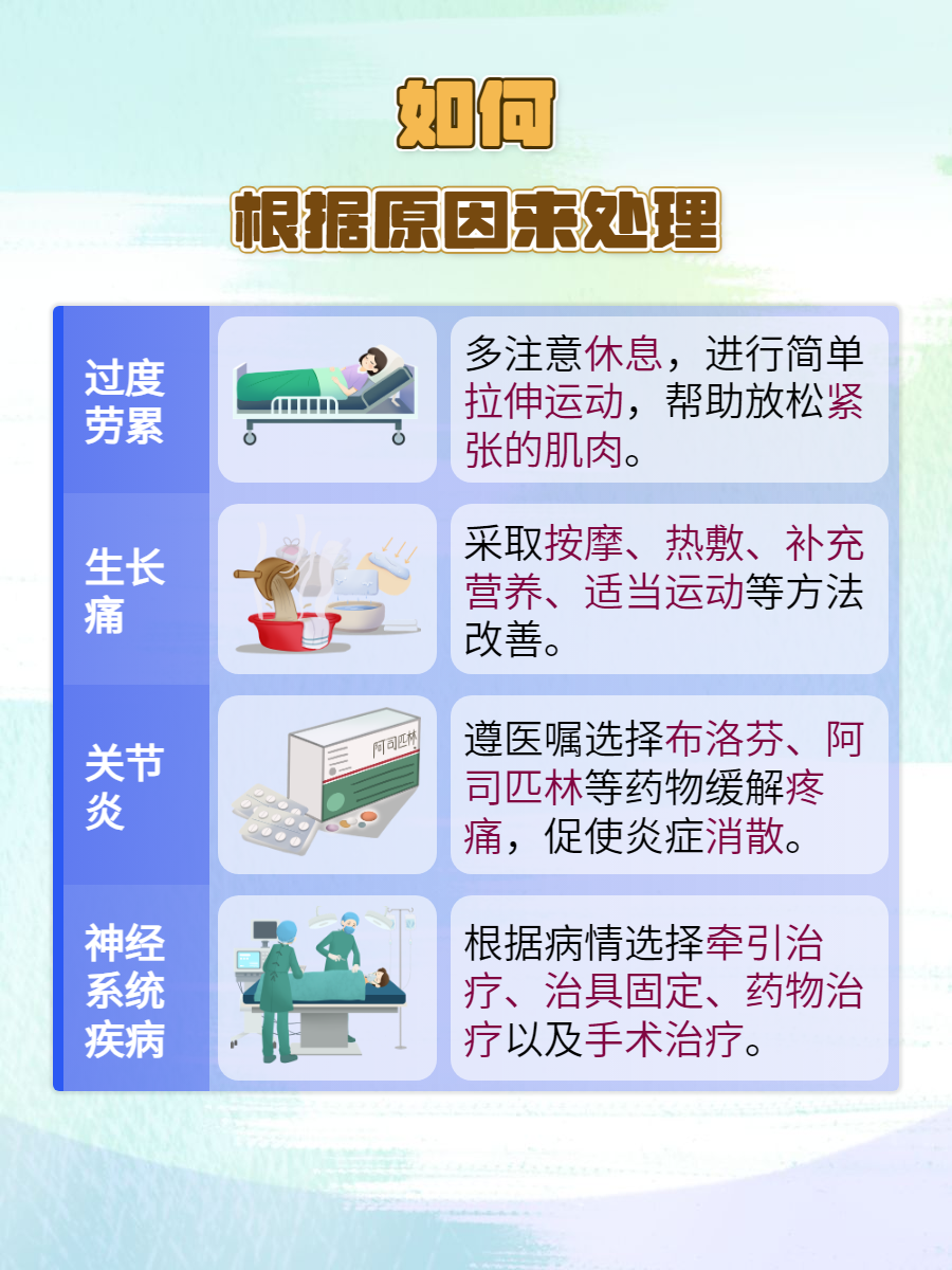 👉2、生长痛:通常在青少年阶段,生长发育比较快,由于骨骼的生长速度超过了周围软组织的生长速度,很容易引起生长痛,疼痛多在夜间发作,持续的时间比较短。