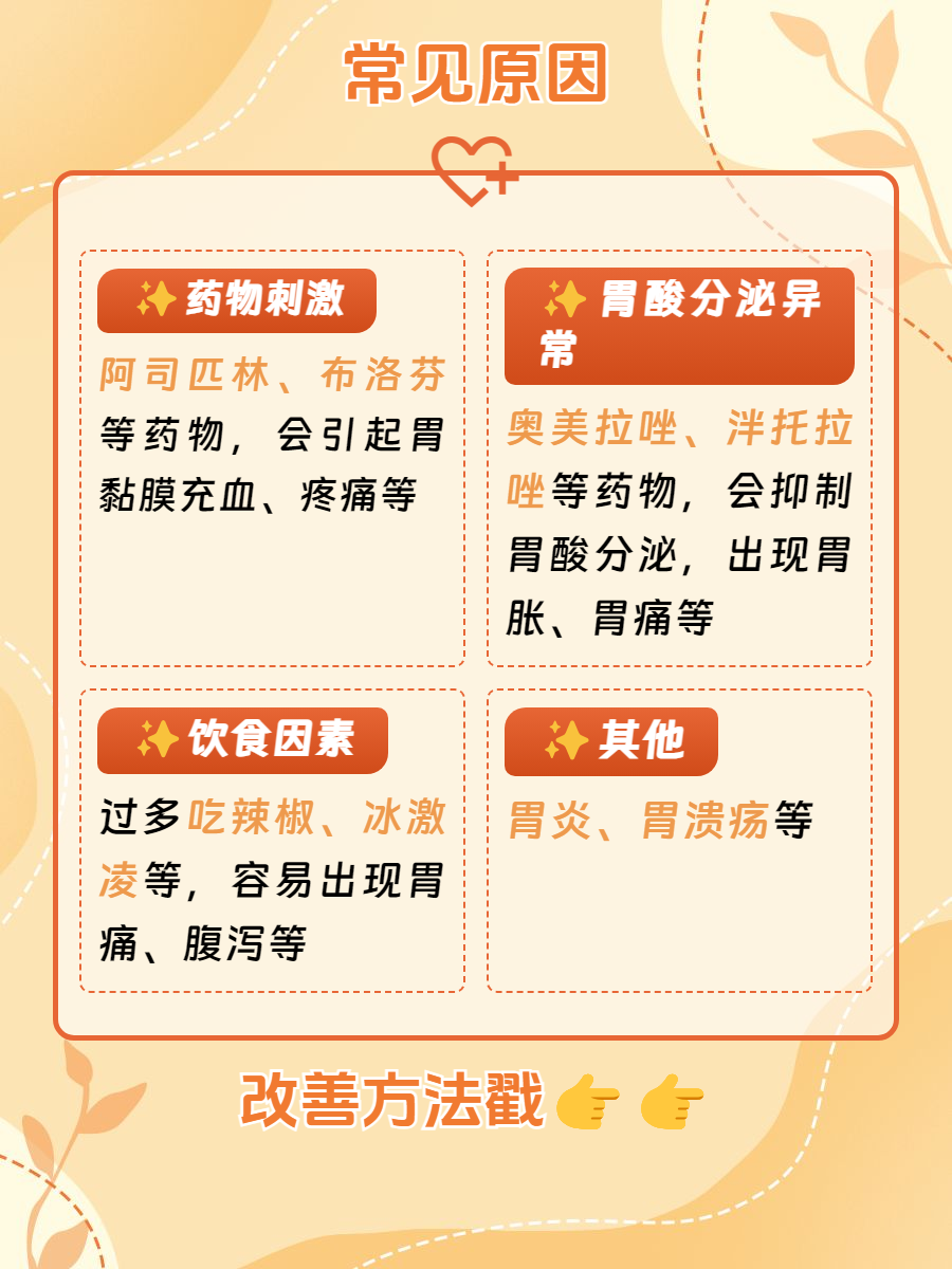 ✨2、胃酸分泌异常:奥美拉唑、泮托拉唑等药物,可能会抑制胃酸的分泌,胃酸分泌过少时食物的吸收和消化可能会受到影响,从而出现胃胀、胃痛☹️、消化不良等。