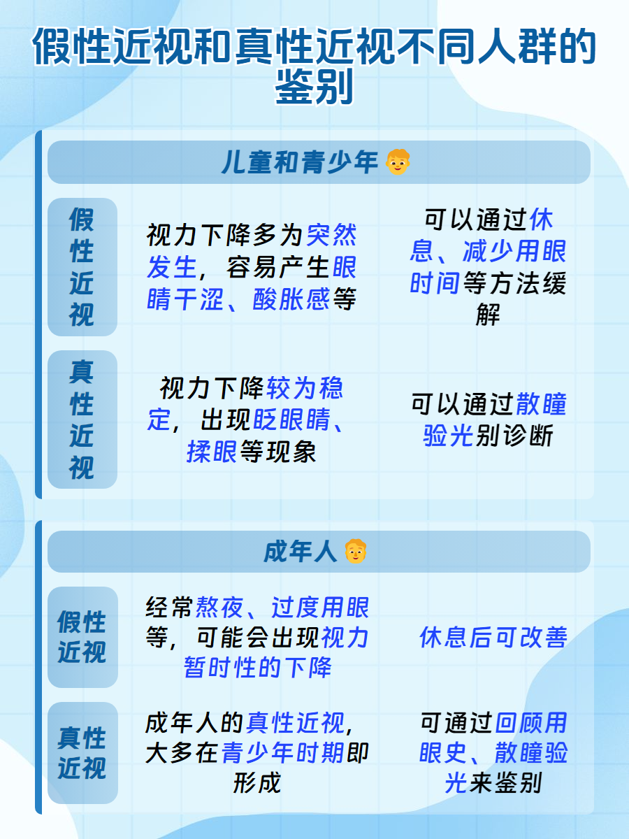 什么叫假性近视?假性近视,又称为“功能性近视”,是指由于眼睛调节功能过度疲劳而导致的视力模糊现象。与真正的近视不同,假性近视并不是眼球形状的改变,而是眼睛的调节能力出现了问题。经过适当的休息和调节,视... 详细»