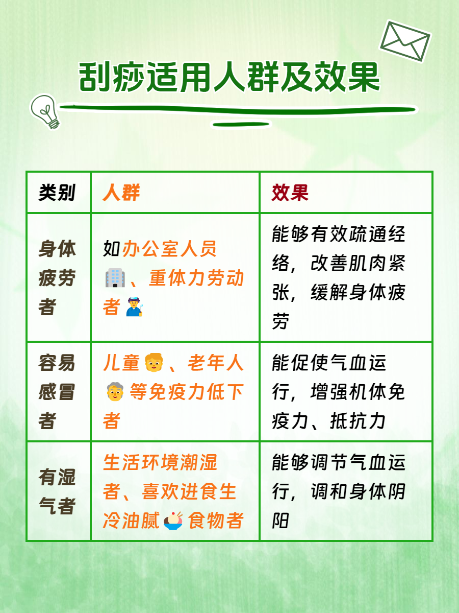 刮痧作为传统的中医疗法🌿,虽然具有很多的好处,但并不是所有人都适合,比如孕妇🤰、体质虚弱者🧓、皮肤过敏者、存在皮肤损害者是不可以刮痧的。
