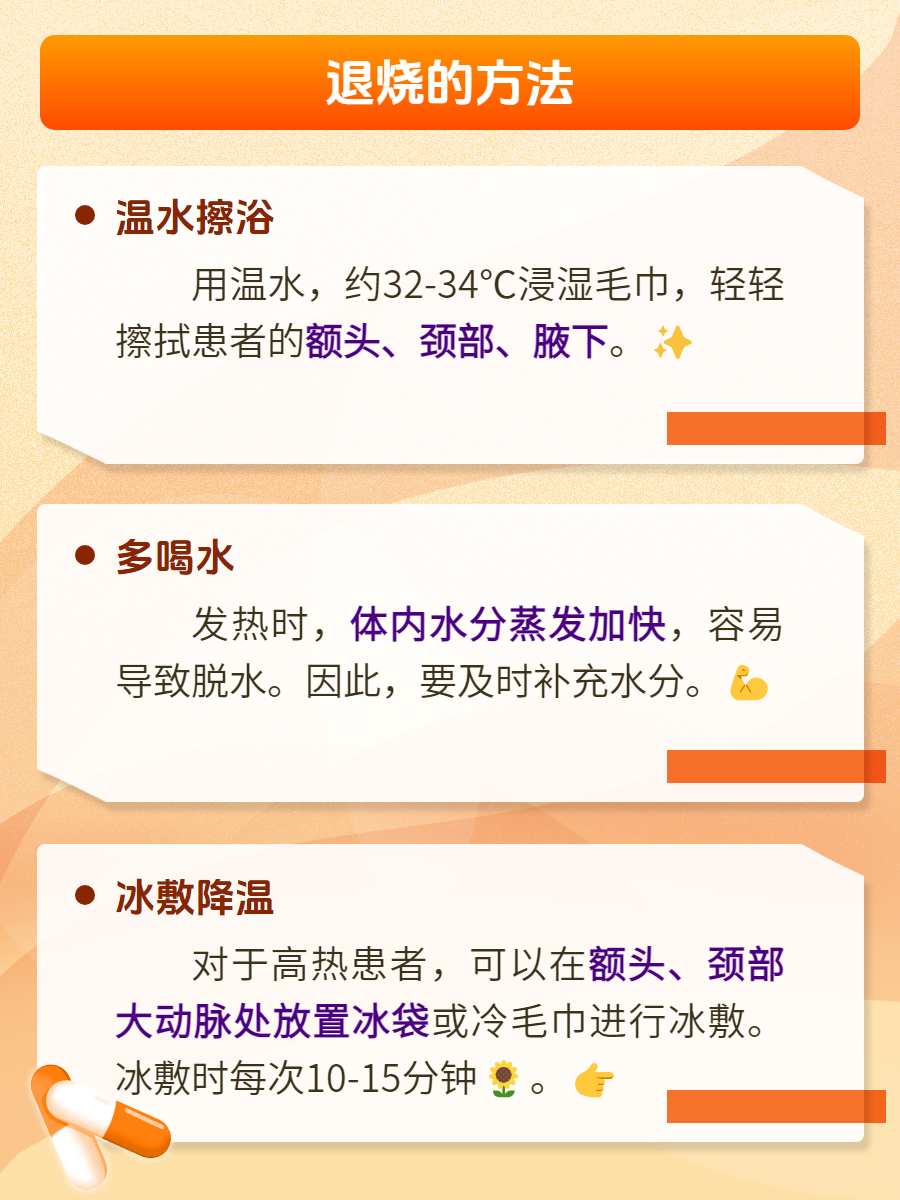对于高热不退的患者,可以在额头、颈部大动脉处放置冰袋或冷毛巾进行冰敷。但需注意,冰敷时间不宜过长,每次10-15分钟即可,以免冻伤皮肤。🌟