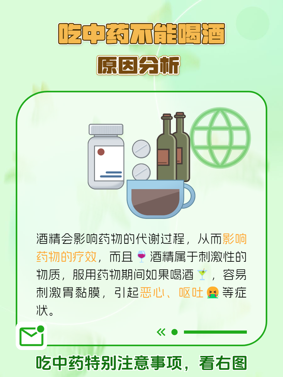 💛然而,需要注意的是,无论是药物还是酒精,都需要通过肝脏进行代谢,如果在服用中药期间喝了酒类饮品,会加重肝脏的负担。