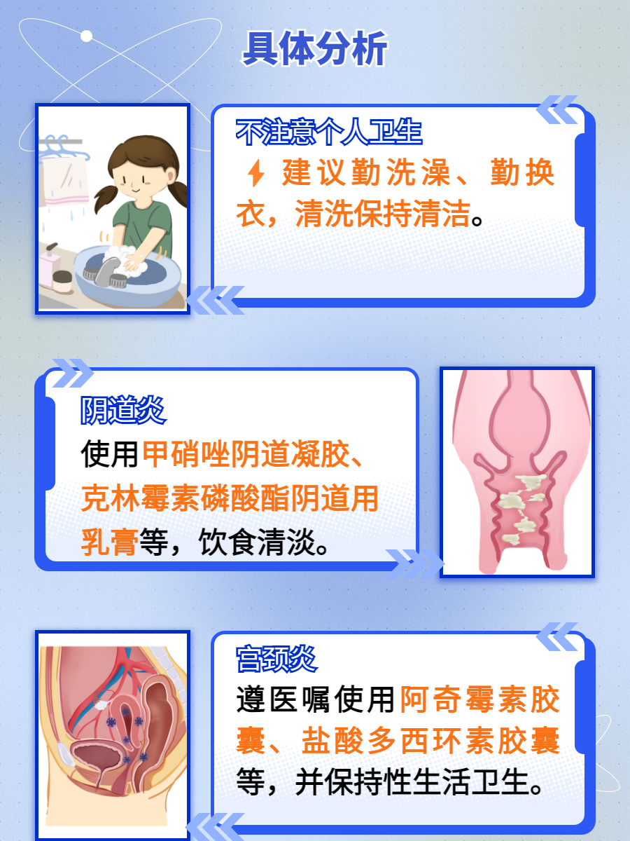 1、个人卫生🛁:每日用温水清洗外阴,避免使用刺激性强的洗液,选择舒适透气的内裤。