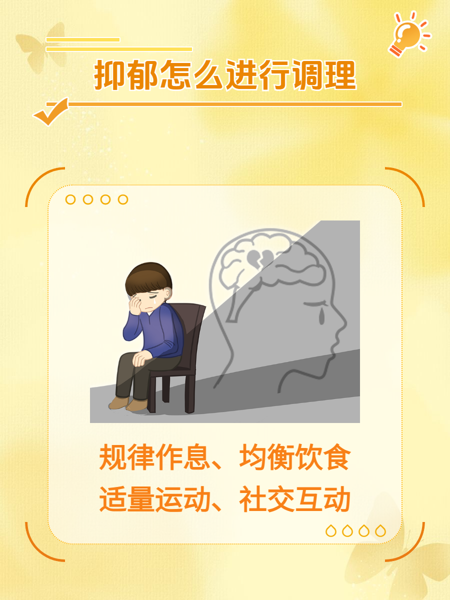 抑郁症是抑郁障碍的一种典型情况,主要表现为情绪低落,兴趣减低,悲观,思维迟缓,缺乏主动性,自责自罪,饮食、睡眠差,担心自己患有各种疾病,感到全身多处不适,严重者可出现自杀念头和行为。那么,抑郁症该怎么进行调理呢?以下是一些常见的调理方法: