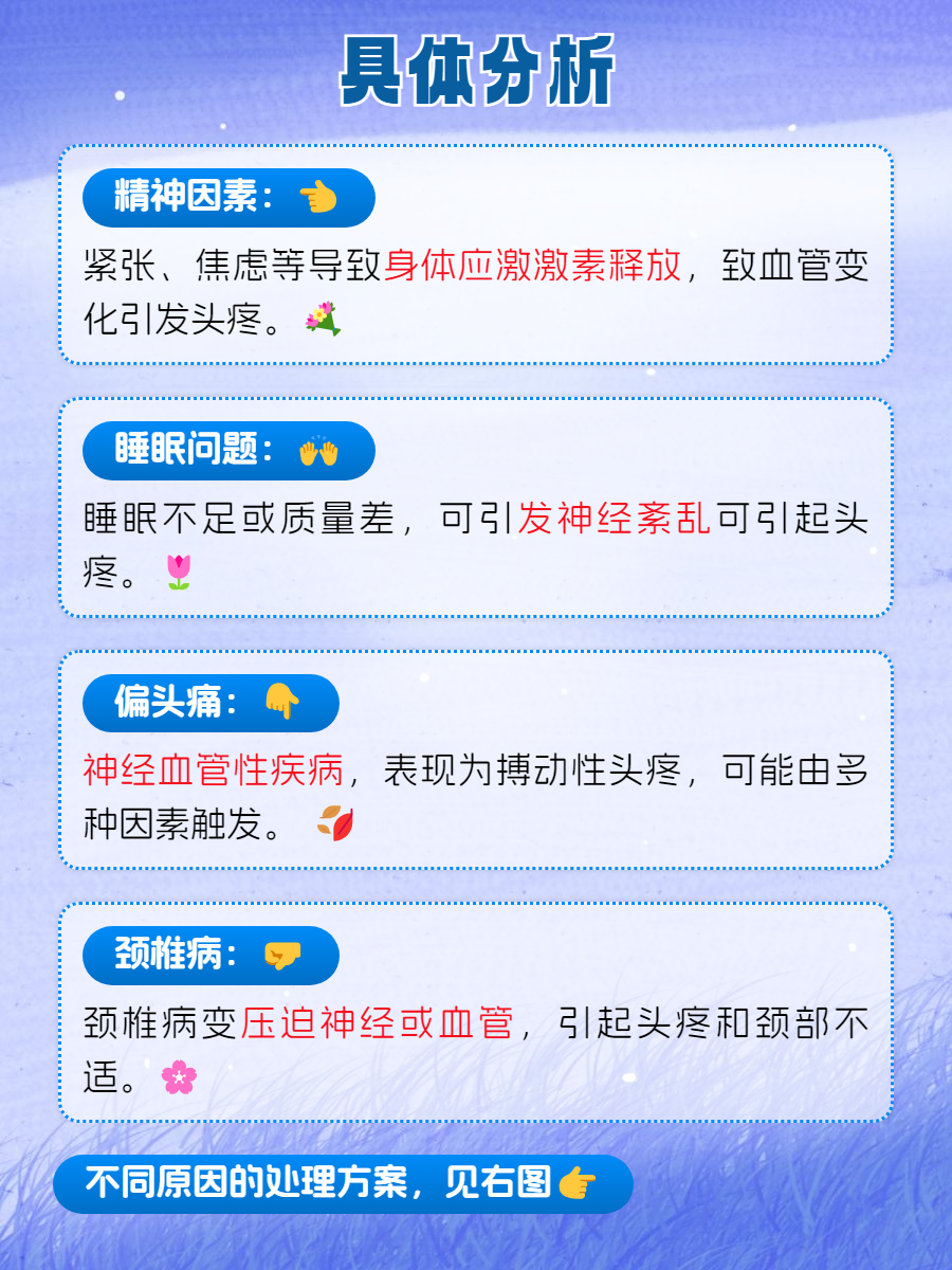 长期的精神紧张、焦虑、压力过大等,都可能导致头疼。比如工作繁忙、😟学习任务重或者生活中的重大变故等,都可能引发精神性头疼。