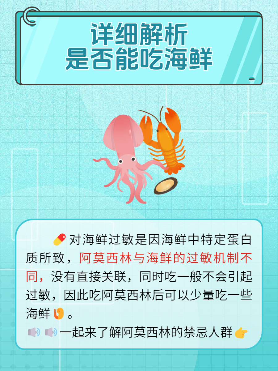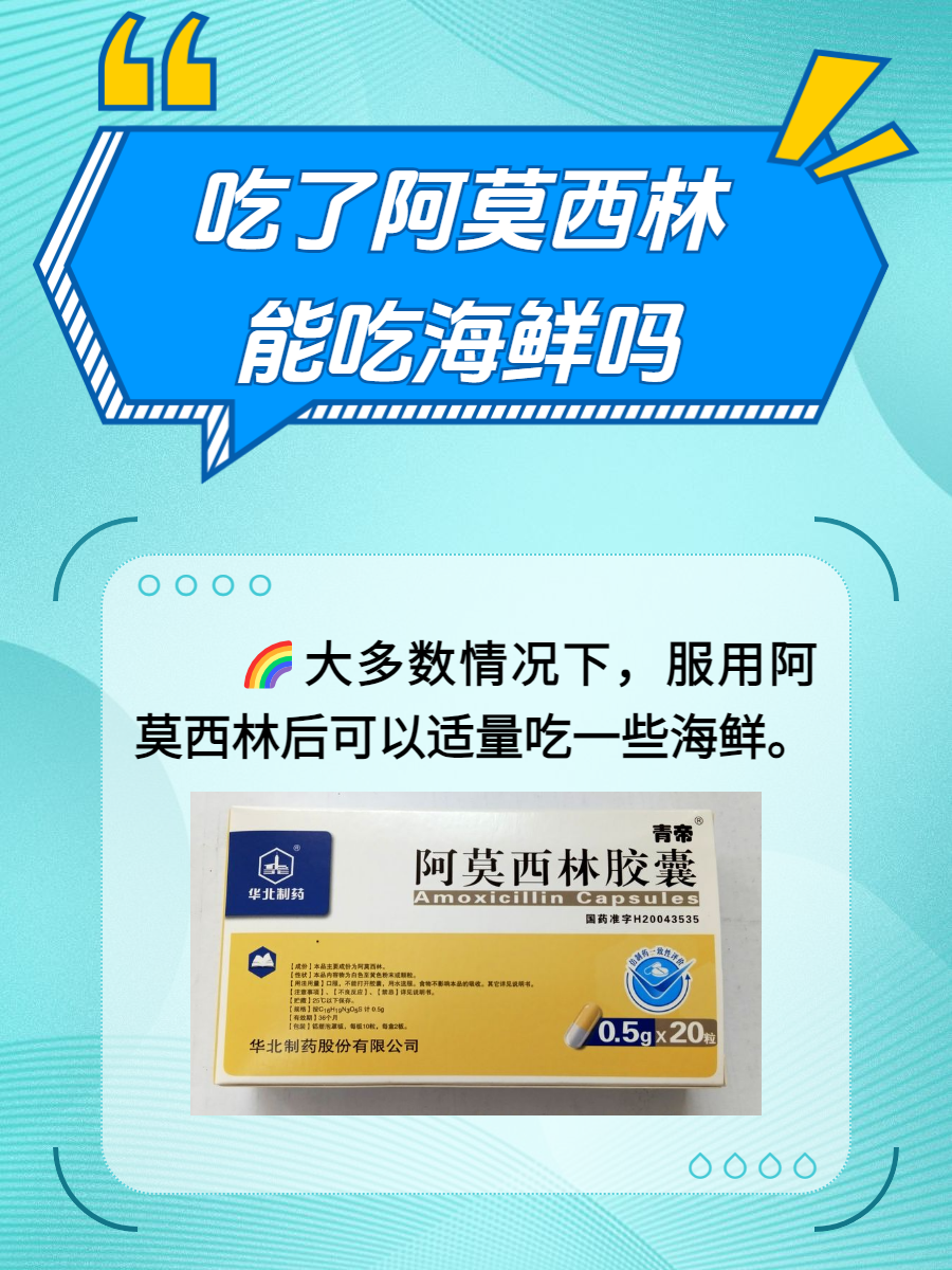 另外,正常情况下,只要按照正常的剂量服用阿莫西林,并且适量食用海鲜,人体自身的调节系统不会因为两者同时存在而出现不良反应💪。