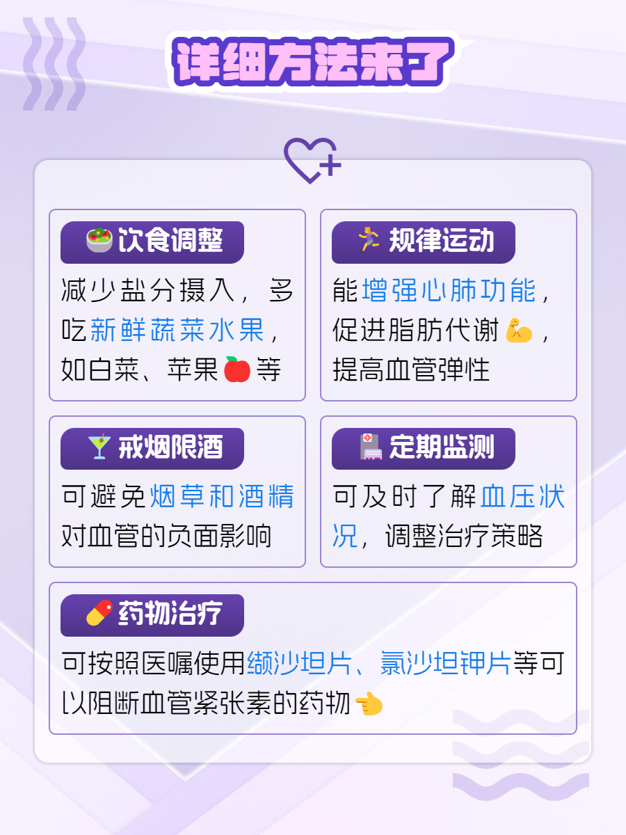 药物治疗:若生活方式调整无法有效控制血压,需遵医嘱服用阻断血管紧张素治疗,切勿自行停药或更改剂量。💊