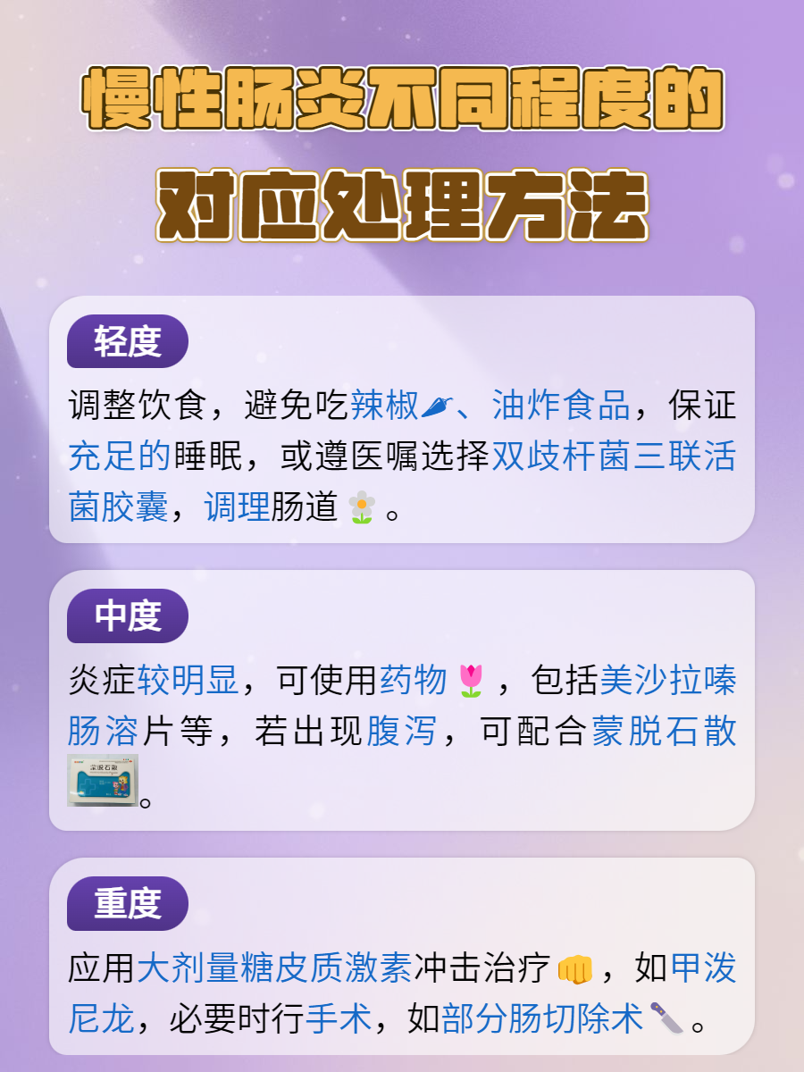 😆总之,慢性肠炎的治疗是一个综合的过程,使用药物治疗的同时还要结合生活方式的调整。🧡希望大家通过阅读文章,对慢性肠炎的治疗有了更清晰的认知,当然,也别忘了将文章点赞或转发🌼。