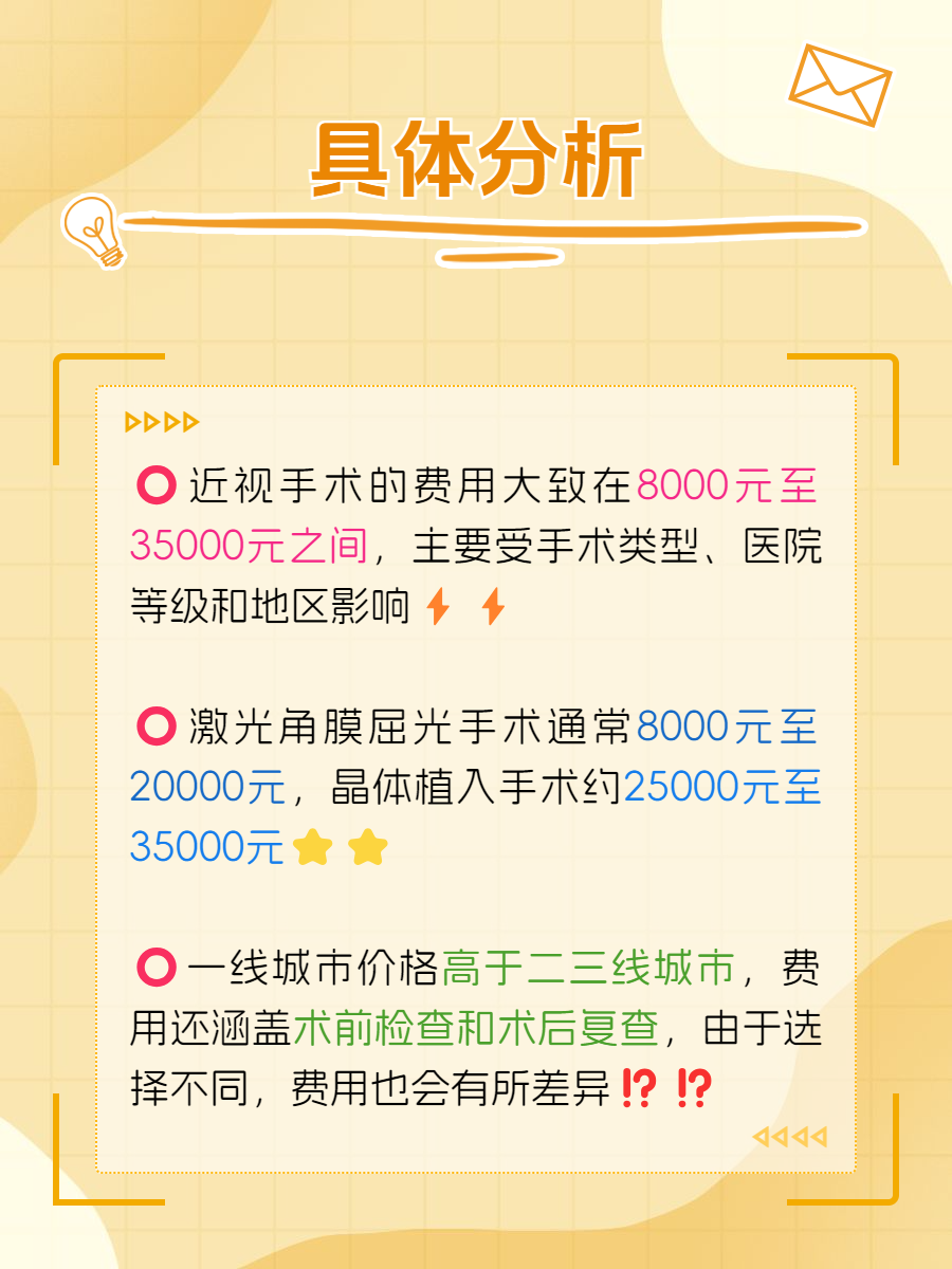 💸手术费用受到多种因素的影响,包括手术类型、医院等级、地区经济差异等。但一般来说,近视手术的费用大致在8000~35000之间。