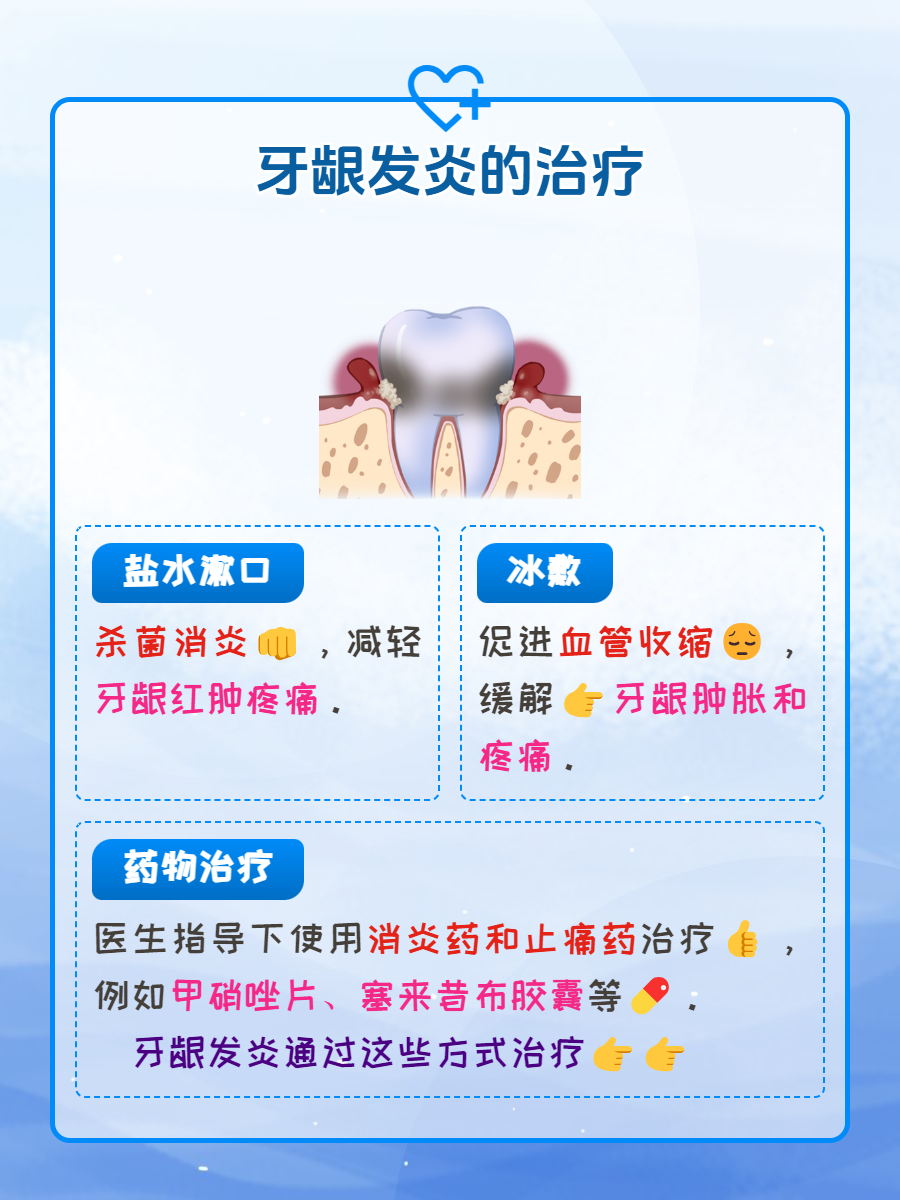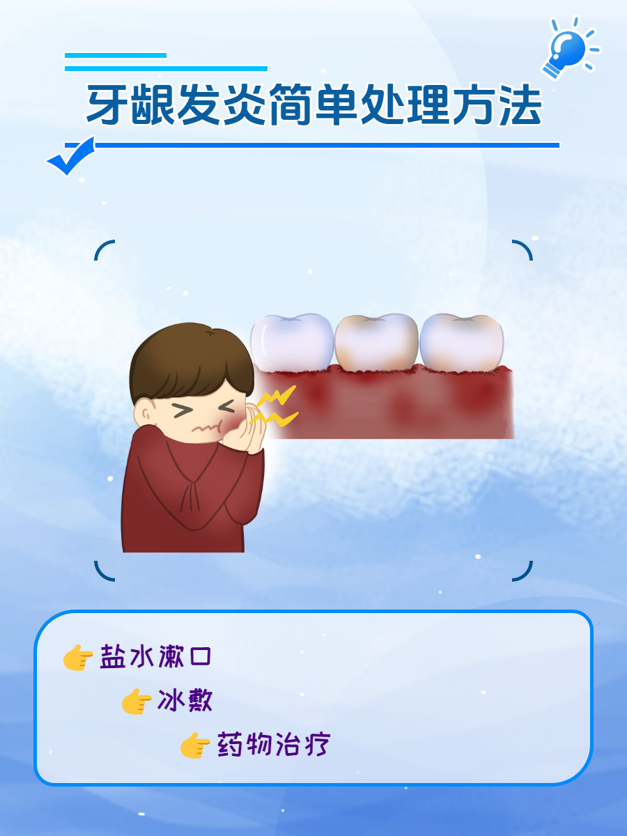 ✨1、盐水漱口:可以使用温盐水进行漱口,能够达到杀菌消炎的目的,并且有助于减轻牙龈红肿和疼痛的症状。