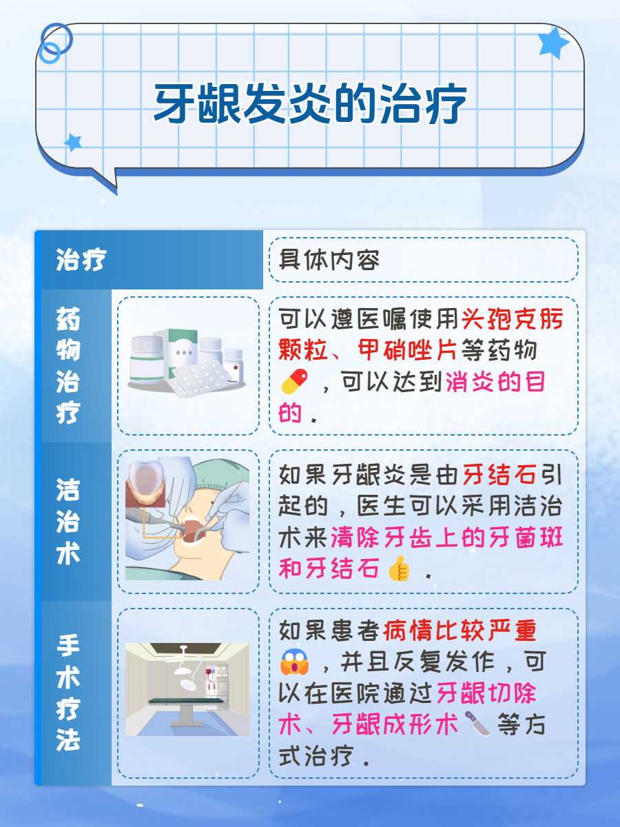 ✨3、药物治疗:可以在医生指导下使用阿莫西林颗粒、甲硝唑片等药物,能够消除炎症,如果出现疼痛症状,可以使用布洛芬缓释胶囊、塞来昔布胶囊等药物,能够缓解疼痛。