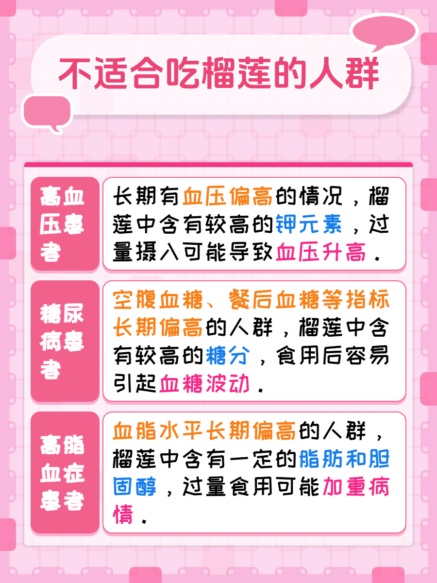 🍭3、适量食用:榴莲虽然营养丰富,但一次不宜食用过多。过量食用榴莲可能导致消化不良、腹胀、便秘等问题。因此,建议每次食用榴莲的量应控制在适量范围内。