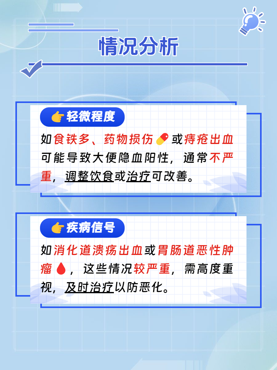 ☀️大便隐血阳性意味着大便中含有少量的血液,肉眼无法直接观察到,但通过特定的检测方法可以发现😮。可能是多种情况的表现,其严重程度不能一概而论🤔。
